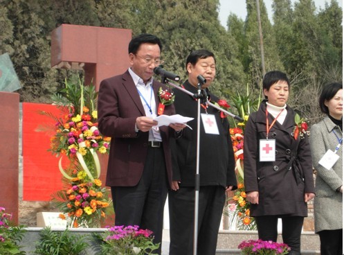 省红十字会秘书长黄永泽为纪念碑揭碑